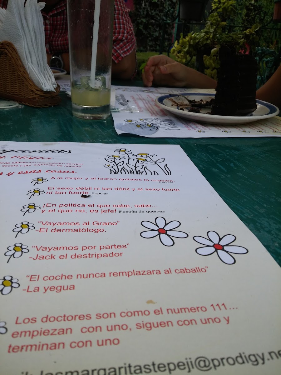 Restaurant Las Margaritas offers a delightful and diverse menu that reflects the rich flavors of traditional Mexican cuisine with a creative twist. Among the standout dishes, Conejo stands out as a flavorful and tender rabbit dish, perfectly seasoned to bring out its natural richness. For those looking for a more unique experience, the Pan Francés offers a delicious and sweet option with its crispy, golden exterior and soft, fluffy interior, ideal for a satisfying breakfast or brunch. The restaurant also features Es Una Bebida Que Llaman Cantarito Coctel, a refreshing and tangy cocktail that combines a blend of citrus fruits, ideal for pairing with any dish. To round out the meal, the Café Moca provides a rich and creamy coffee experience, perfect for finishing off a great meal. With its variety of flavorful dishes, Restaurant Las Margaritas ensures that every visit offers something for every taste.